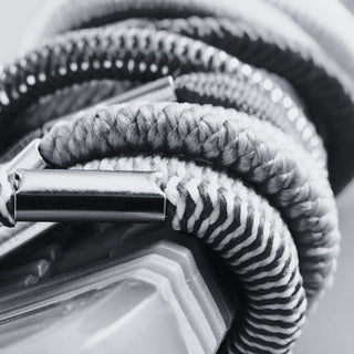 Damage caused from continuous grating against rough textured hair ties including metal clasps. This is generally more severe with tighter and more constricting hair ties like traditional elastics since tightness drastically increases abrasion.